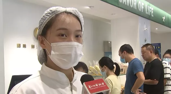 九月生活复兴店店长李欢欢:“从早上七点半卖到下午三四点就没有了,多的有买五六百个的,正常的话居民买二三十个家里吃吃就好了。”