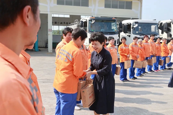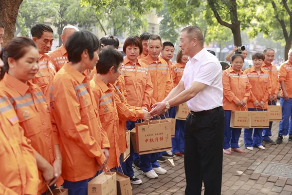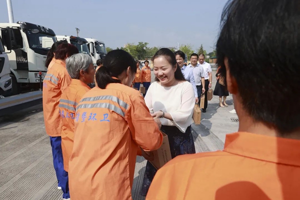 本次活动中,诸暨市委宣传部、市企业家协会代表陈利祥、青年企业家协会代表楼畅、女企业家协会代表冯曌秀一行先后来到下坊门中转站、赵四中转站,相继为城市美容师们送上诸暨老字号绿球月饼,并致以节日的问候。
