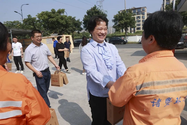 今年,诸暨市委宣传部、市文明办等单位在继续提供爱心早餐的基础上,还在多个节日依次给环卫工人送去慰问,让更多的爱心人士关心关爱城市美容师。