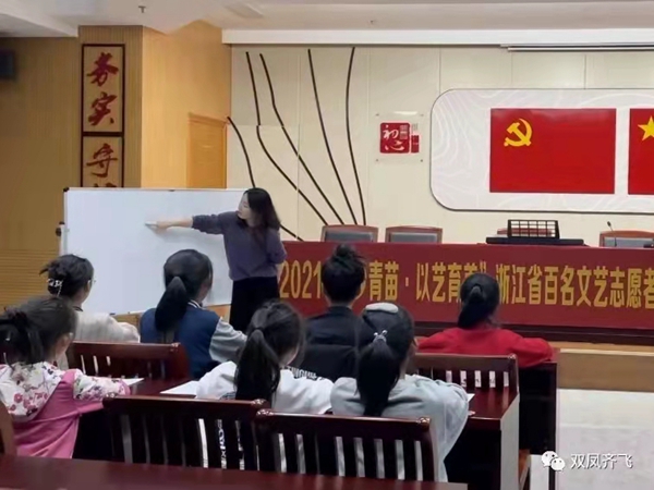 为进一步改进和创新农村未成年人思想道德建设,推进美育建设,落实“双减”政策,海宁市双凤社区利用文化礼堂阵地资源,在金秋十月开展了2021“圆梦青苗?以艺育美”浙江省百名文艺志愿者面向农村未成年人开设美育课堂——少儿声乐艺术项目。