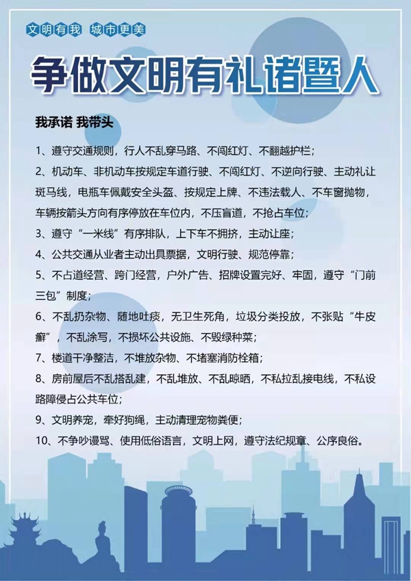 文明,是一座城市最温暖的底色;文明城市,是一张亮丽的城市名片,每个人都是城市文明的代言人。