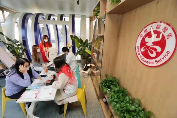 2021年11月15日,湖城爱山家园志愿广场,志愿团队为市民提供义诊、文明宣讲等服务。王洁涵/摄