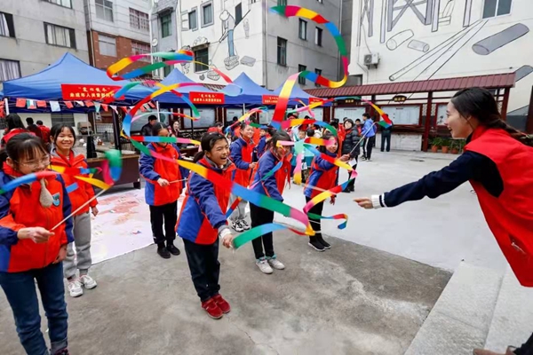 此外,来自青少年活动中心的志愿者老师们还为孩子们带来一堂有趣的文体活动课,活动现场充满了孩子们的欢声笑语。