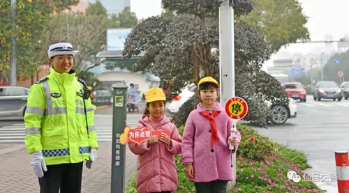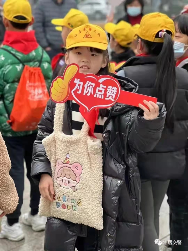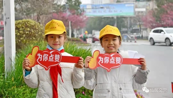 1月26日上午,仙居县安洲小学三年级(4)班的孩子们在交警的带领下,来到了仙居县环城西路与环城南路的斑马线边开展文明礼让文明宣传,看见市民文明过马路,小学生们就会微笑着上前“表扬”市民在公共场所礼让的文明行为。