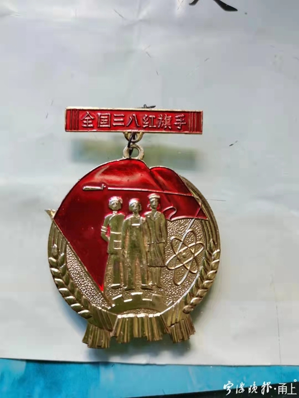 已经90岁的郑善英,对于40多年前的事情记得特别清楚。她拿出一枚“全国三八红旗手”徽章,这枚徽章记录了她辉煌的一刻。