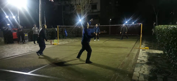 刚吃完年夜饭,在“婺江新羽”微信群里就有人喊“开工了”,不到10分钟,婺江新村羽毛球场上就有10多个年龄不同的“村民”开始了羽毛球双打对峙,谁输谁下。这帮羽毛球爱好者,只要天晴,每天都打到熄灯,在他们的带领下,金华市婺江新村的群众性体育活动如火如荼地开展,推动全民健身发展。