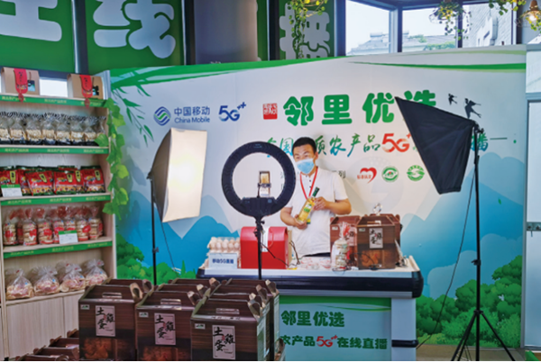 农贸市场在二楼开设了邻里优选在线直播区域,主要为杭州市对口扶贫城市的精准扶贫农产品提供销售平台,设有湖北恩施和贵州黔东南的农产品专柜。通过5G在线直播这一新业态形式,不仅可以为这些扶贫农产品进行直播带货销售,也可以对市场经营户的产品进行线上直播销售,为他们增加线上销售的渠道,让消费者增加更多的体验感和参与感。除了直播平台,农贸市场二楼专门打造了共享空间,为消费者提供公共休息场所,方便消费者特别是老年人买菜后坐下来拉家常,紧密邻里情。同时还设有老年大家食堂,方便周边社区老年人和市场经营户就餐,为辖区行动不方便的老年人提供送餐服务。