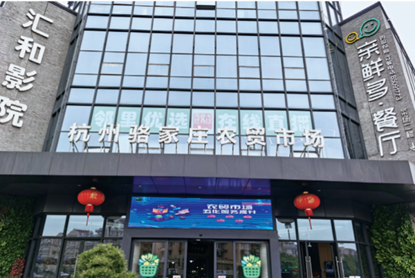 浙江省杭州市骆家庄农贸市场改造后智慧化集成大屏。