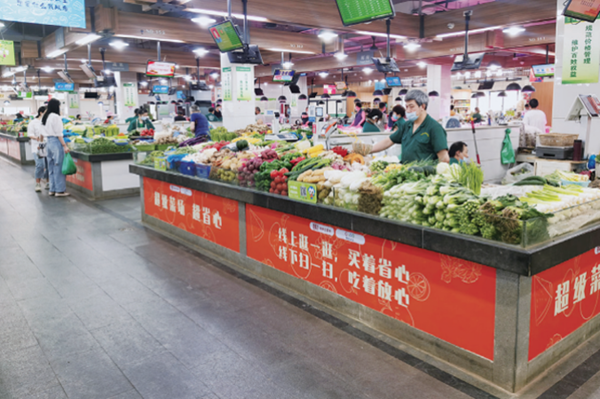 农贸市场专门在服务大厅专门设置了智慧化集成大屏,通过各项数据的收集与分析,使消费者能够了解到市场实时人流量、市场商品检测情况、市场每天菜价变化等信息。通过连接城市大脑,利用区块链溯源技术,可做到上链商品来源可溯、去向可追、质量可查、责任可究,真正做到让消费者放心、安心。此外,市场还定期开展经营户“红黑榜”评选,奖优罚劣,努力提升服务水平。定期开展消防安全知识培训,进行安全巡检,努力打造放心安全市场。