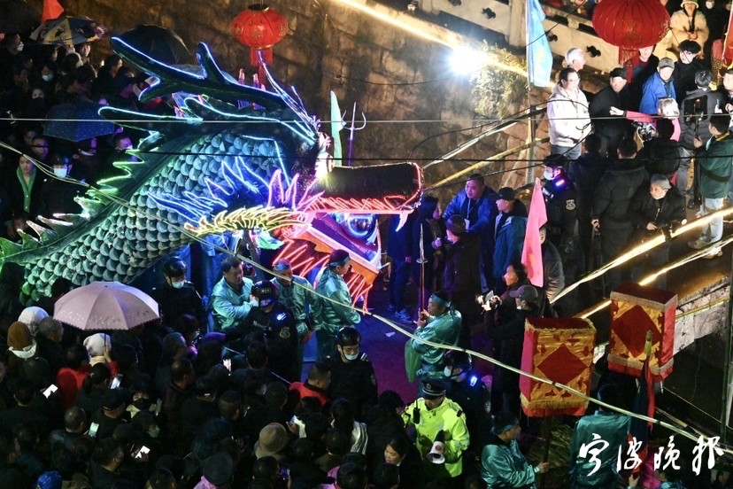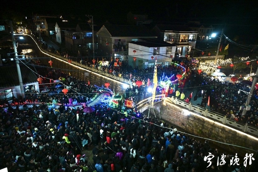 时隔三年,西岙村“双龙飞游”的盛景再现,纷沓而来的游客、村民簇拥在大龙两侧,祈福新的一年风调雨顺、安康如意。宁波晚报甬上APP对这场盛况进行了现场直播,截至记者发稿,已吸引超过10万人次观看。