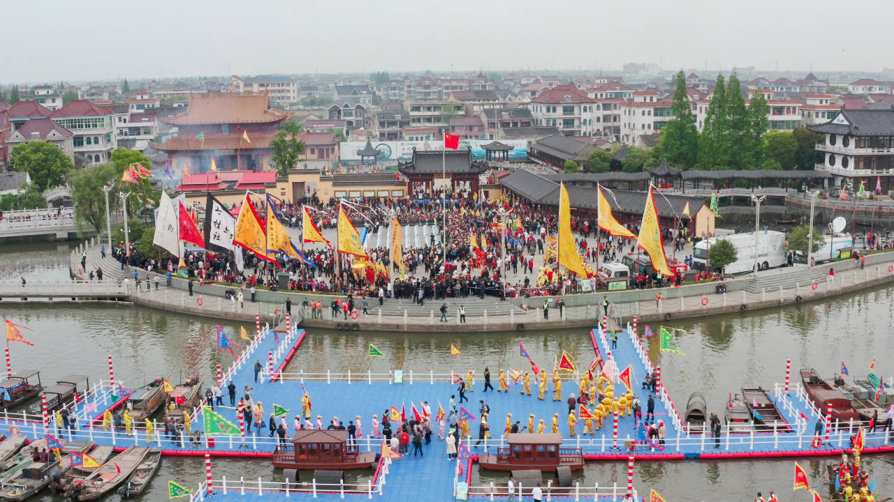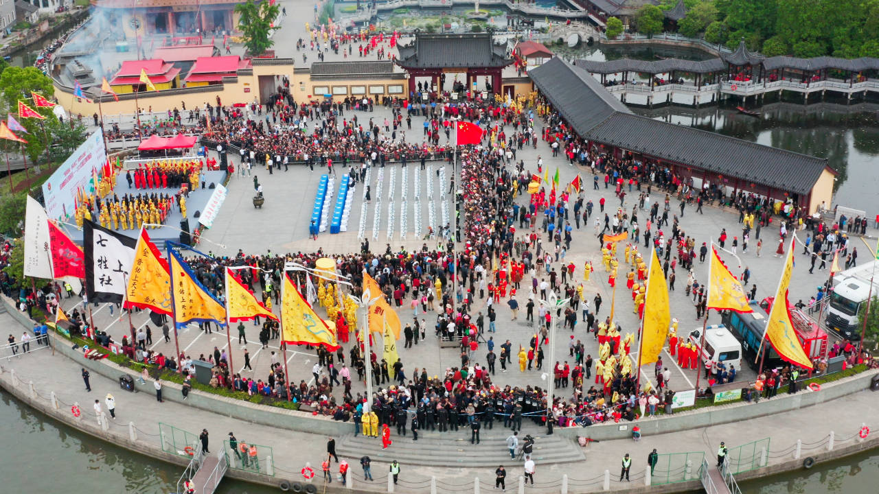 江南四月,杨柳吐青,花香满溢;莲泗荡畔,百舸争流,游客如潮。阳光下,微风里,鳞次栉比的旗杆挺拔而又威武,各色的彩旗醒目地猎猎作响,浩浩荡荡的社团串堂队伍敲锣打鼓,用最传统的姿态还原最“原汁原味”的民俗。