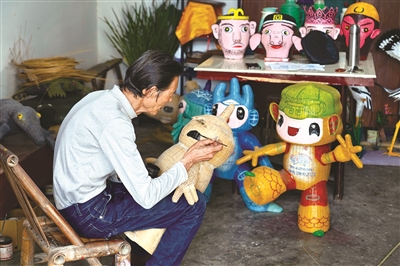 亚运会吉祥物“江南忆”由3个卡通人物组成,分别叫“琮琮”“莲莲”和“宸宸”,造型各异、色彩鲜艳。因为没有吉祥物的模板,王振富凭借想象,一边创作一边琢磨,一件作品耗时20多天,极其考验创作能力。