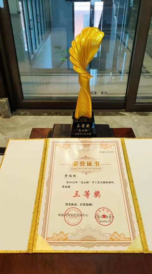2016年,59岁的黄福根完成了人生第一件根雕作品《穿山甲》;64岁那年,他的作品《南湖红船》入选嘉兴市非物质遗产百件红色主题作品展,在桐乡、温州等地展出,并获得了人生第一个奖项铜奖;2021年,疫情下的黄福根迎来了自己创作的丰收年,《老鹰》、《宝刀》、《火炬》、《喜鹊》4个太行陈化崖柏作品被秀洲区非遗收藏,列入秀洲区非物质文化遗产名录;2022年,作品《自在鱼翁》获得“艺心杯”全国手工艺大赛三等奖。并完成了自己人生的第一本作品集。至今,黄福根已制作出二百多件根雕作品。已是嘉兴市工艺美术协会会员、秀洲区收藏家协会会员。