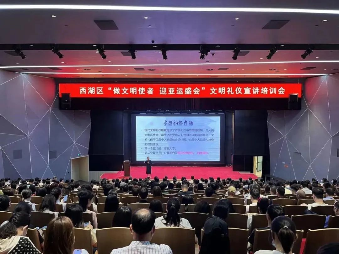 为更好地迎接第19届杭州亚运盛会,深入推进“迎亚运讲文明”杭州市城市文明大提升行动,提升窗口单位工作人员和市民的文明素质,展示良好的精神风貌,掌握涉外礼仪知识,提高服务水平,树立良好的杭州城市文明形象,杭州市文明办与杭州市公共关系协会决定于2023年5月-8月,在杭开展“做文明使者,迎亚运盛会”公关礼仪宣讲活动,对机关、学校、社区、窗口行业等单位,开展线下公关礼仪讲座,对礼仪文化、仪表礼仪、会面礼仪、接待礼仪、餐饮礼仪等知识进行培训。