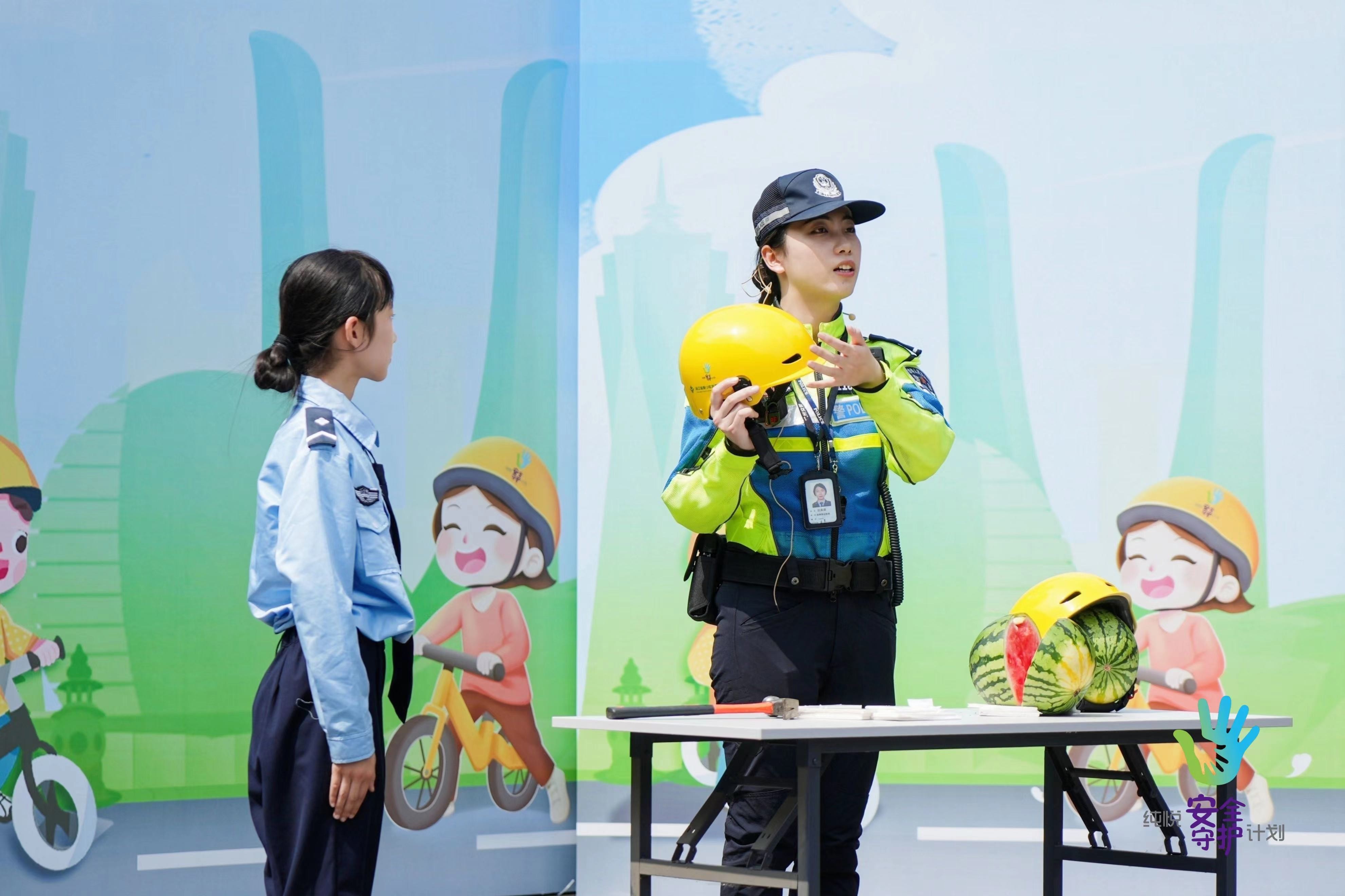 杭州市公安局交通警察支队现场开展了交通安全模拟实验课堂,围绕“佩戴安全头盔的重要性”交通安全风险点展开科学小实验,让在场学生、家长、老师切身感受到不遵守交通规则的安全隐患和有可能引发的危险后果。实验浅显易懂、生动有趣,不仅让学生和家长能够直观地看到不规范行为带来的危害,也能够理解交通行为规范背后的科学原理,从而提高交通全意识,养成良好的出行习惯,避免危险事故的发生。