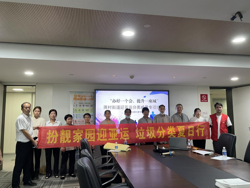 随着杭州亚运会的临近,西湖区蒋村街道为了贯彻“办好一个会,提升一座城”的精神,致力于提升街道的整体环境。近日,下午街道数字化综合指挥中心组织西溪壹号园区及龙章大厦物业人员开展了“扮靓家园迎亚运垃圾分类夏日行”专项活动。