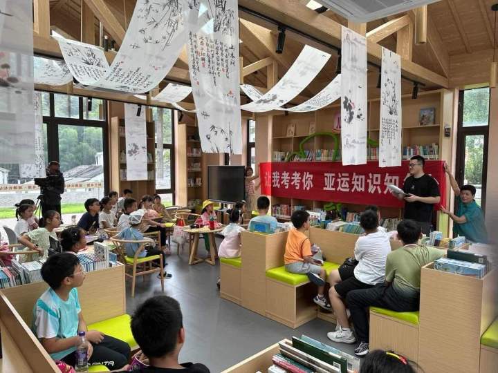 活动现场,志愿者首先向孩子们讲解了亚运会的相关知识,并就亚运会的会徽、口号、绍兴迎亚运等内容进行亚运知识竞答环节,一道道有关亚运的题目,让现场的孩子们参与热情高涨,现场气氛活跃,让孩子们更加贴切的感受到亚运氛围,更进一步认识亚运、了解亚运和热爱亚运。
