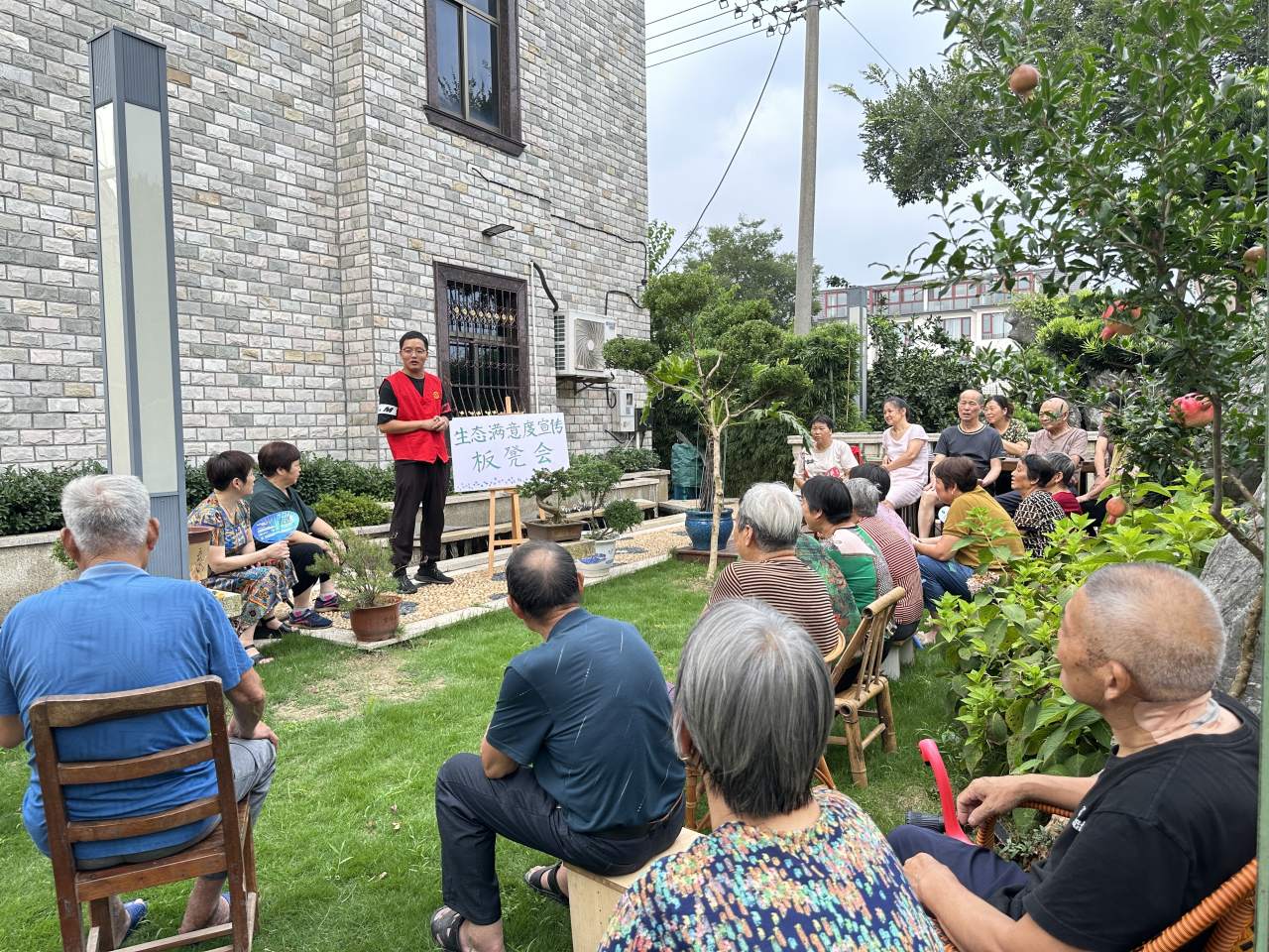 “各位村民朋友,大家觉得现在的生态环境好吗?”近日,一场“喜迎亚运·生态环境满意度宣传板凳会”在余新镇普光苑小区902号的美丽庭院拉开帷幕,辖区内30余名村居民前来参与。