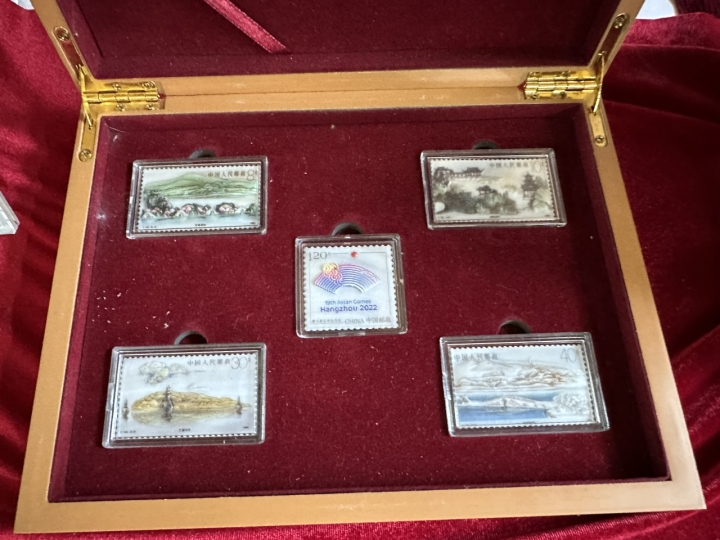 “我们想借助杭州亚运会这一窗口,以纪念邮票的形式,来展现江南文化和亚运文化。”俞友金说,这次他受中国邮政集团杭州分公司委托,设计创作了今年杭州亚运会的特许商品贝雕邮票,目前已公开发行六枚,还有两枚预计将与亚运会开幕同步发行。