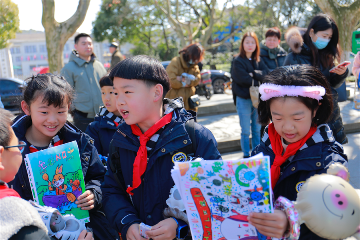 小朋友们虽带着稚气,但仍鼓足勇气,向每一位素不相识的游客绘声绘色介绍了他们所描绘的事物,承担“小宣传员”的使命。以一己之力,争当拱墅优礼,文明杭州的践行者。