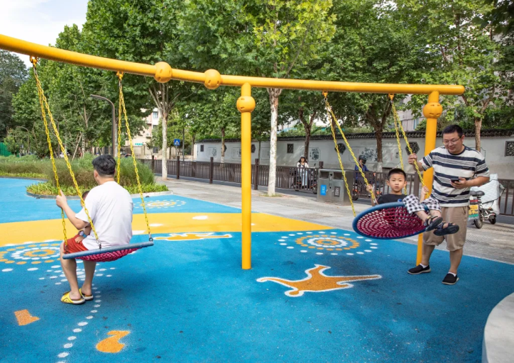 大境花园居民周女士介绍,由于她和丈夫工作忙碌,很难抽出大块时间陪孩子到大公园去玩。新建成的口袋公园离家近,刚好满足了他们的带娃需求,他们几乎每天晚饭后都会带孩子来到这里。“这里安全、安静,孩子玩得开心,我们家长也放心。”