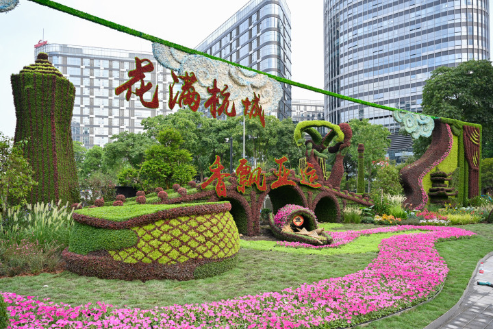 如今,“花满杭城香飘亚运”大型立体花坛屹立于此,成为一道全新的靓丽风景。