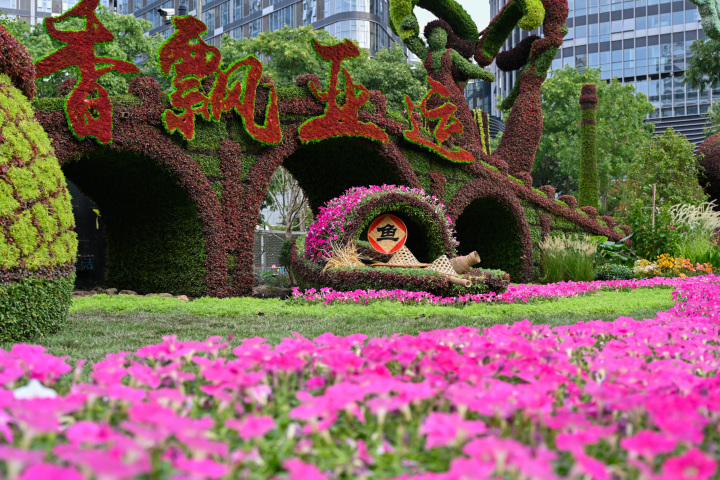 “整个立体花坛本身也是一出亚运剧目。”工作人员说,最外围是一圈定制的电影巨幕,以流淌千年的大运河为地图,结合拱墅区标志性建筑,期寄在亚运期间为来到的观众和市民,展现花满拱墅、花满杭城的美好画面。