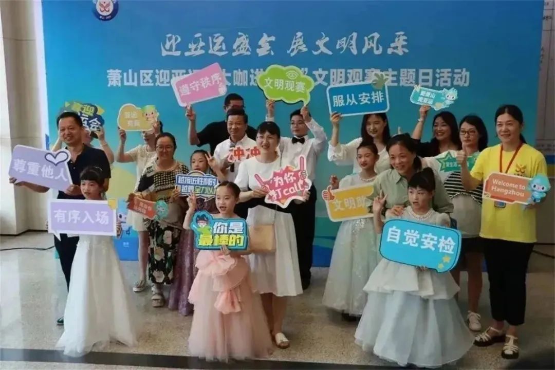 萧山区以城市文明大提升为抓手,聚焦“文明观赛”主题开展系列活动,全域渲染文明观赛氛围,有效普及文明观赛知识,着力提升文明观赛意识,以更好的城市形象迎接亚运盛会。