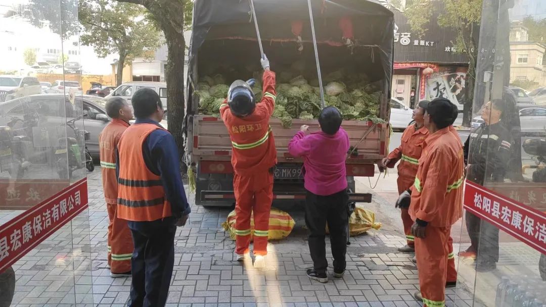 当天下午,在小谢的一再坚持下,这满满一车的“谢礼”,一小部分送给了帮助过他的人,大部分都送给了松阳的环卫工人。