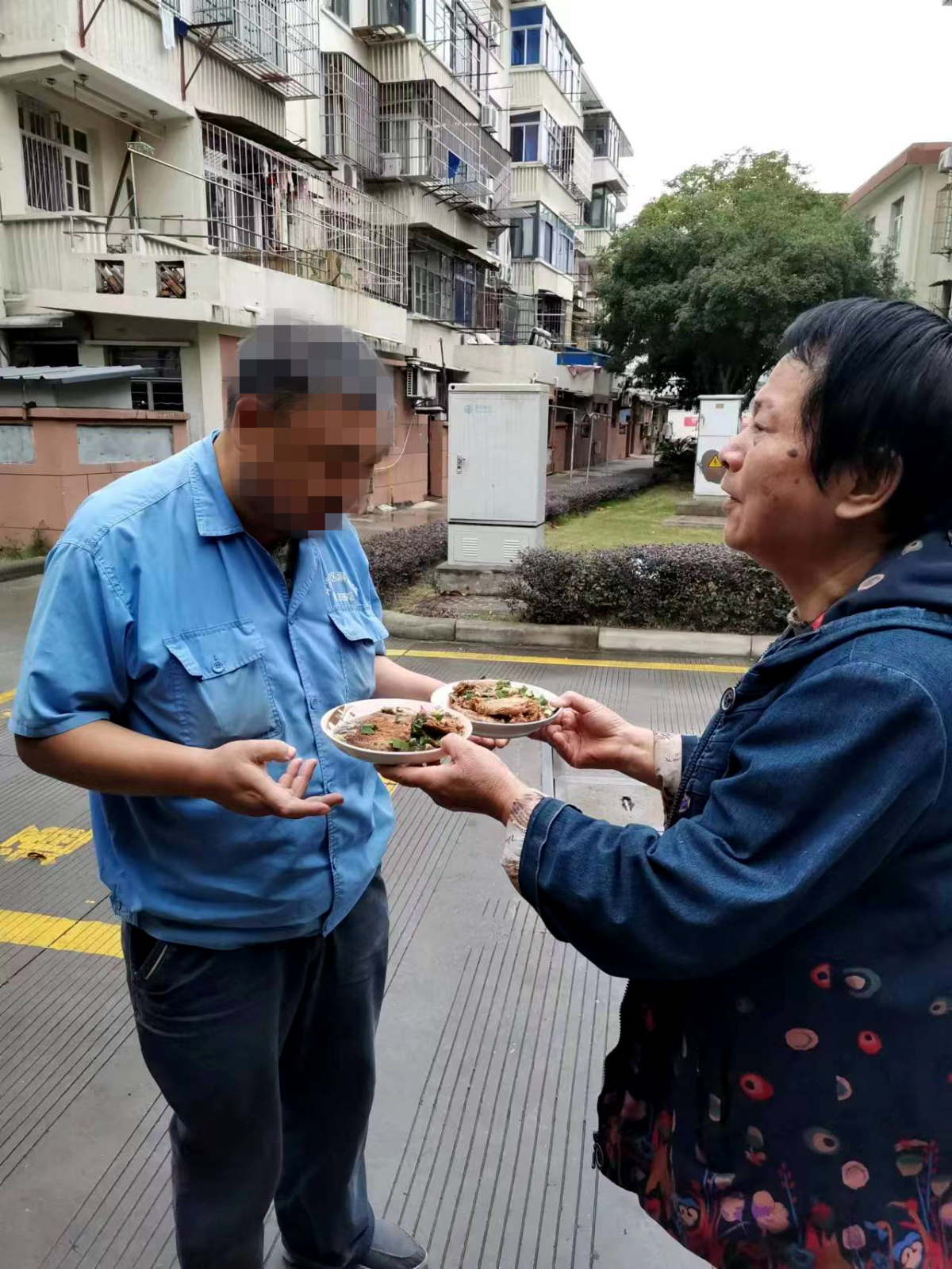 细心观察后,周阿姨发现每到双休日或节假日,吴师傅的家门口便有散落的咸菜、馒头等残渣。于是,她带着自家的家常菜,敲开了吴师傅的家门,也敲开了对方的心门。“小吴,我家老头子今天菜烧多了,你要是不嫌弃,就尝尝看。”