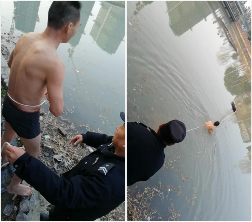 待工作人员们赶到现场时,只见距离岸边大约20~30米左右的位置漂浮着一个人,一眼望去似乎已经没有了挣扎的动作,可能已经陷入了昏迷,当时情况十分危急。见到此情景的今年54岁的保安队长吴建,立马脱下了衣服,绑上绳索,跳入水中救人,“昨天有些冷,我穿了挺多衣服,我当时特别着急,里面的衣服都是直接扯开的,生怕晚一秒耽误了救人。"吴建告诉记者。