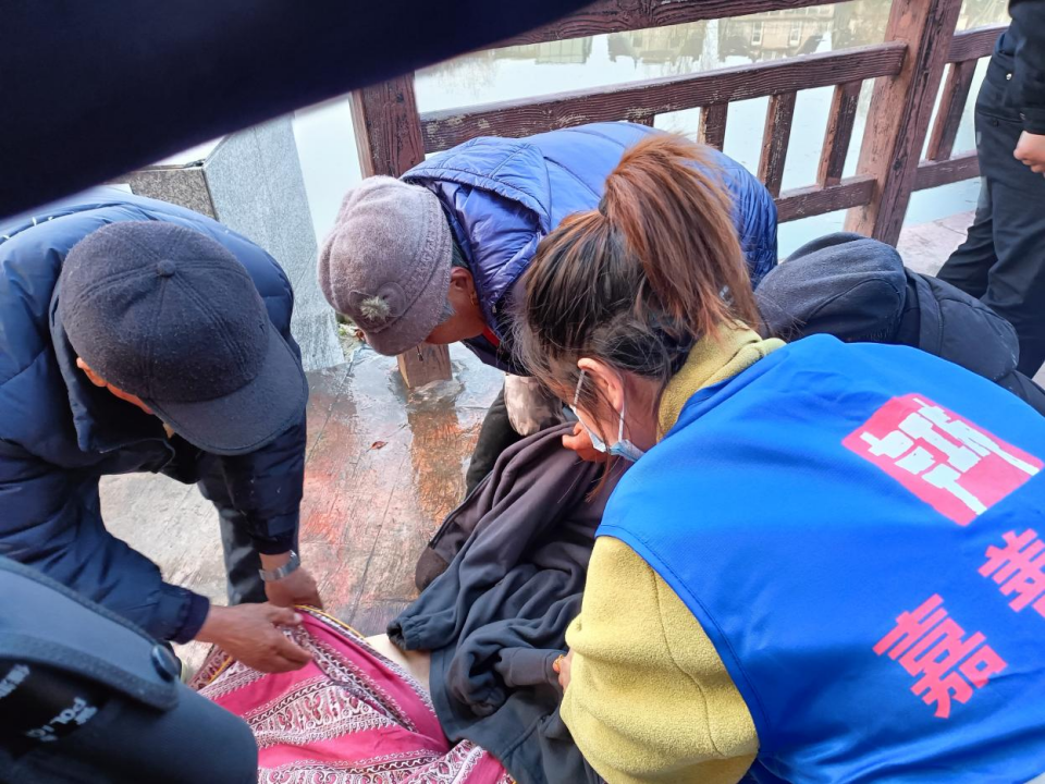 “有人落水啦!快来救人啊!”1月3日下午,嘉善县罗星街道李家社区的景观河旁,一名居民正焦急地喊道。听到呼救后的社区工作人员和特保队员们携带救生工具,第一时间冲向事发现场,并拨打了110及120。