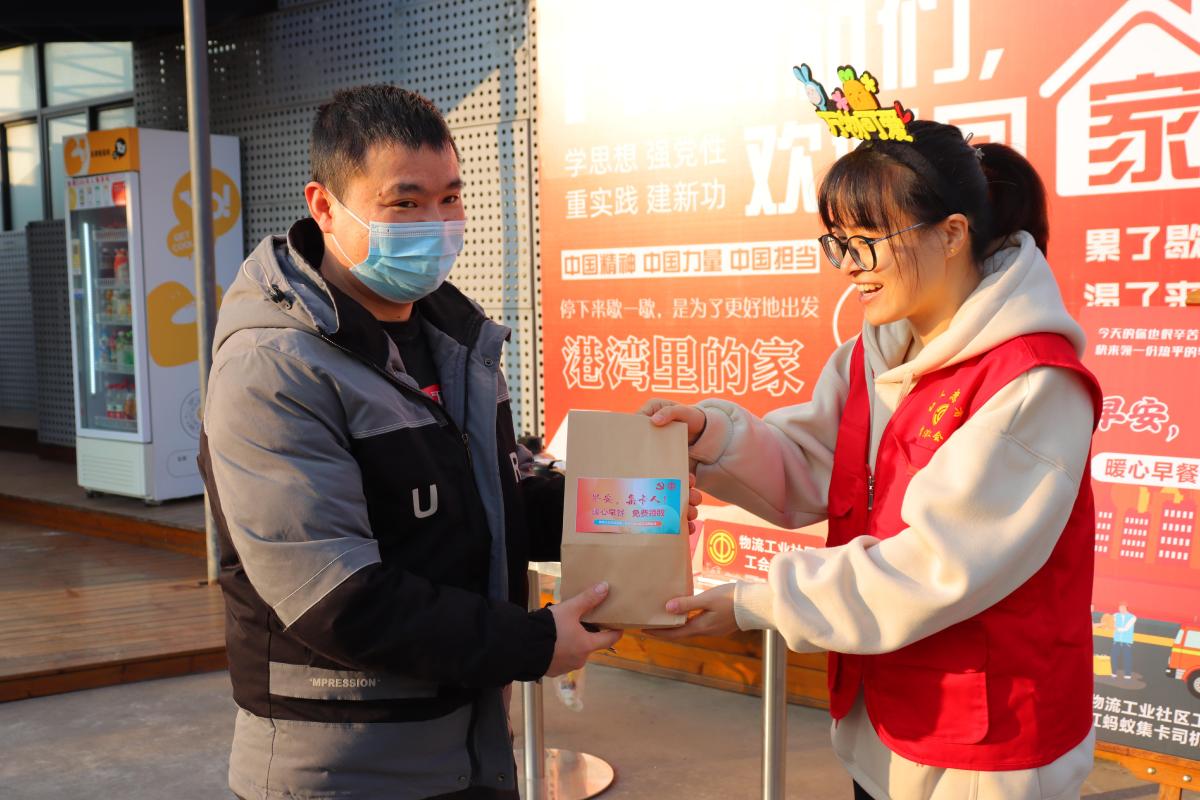 1月9日早晨,面向集卡司机等户外劳动者,北仑霞浦物流工业社区工会联合会启动“早安,集卡人”暖心早餐行动,每天计划派发350份早餐。