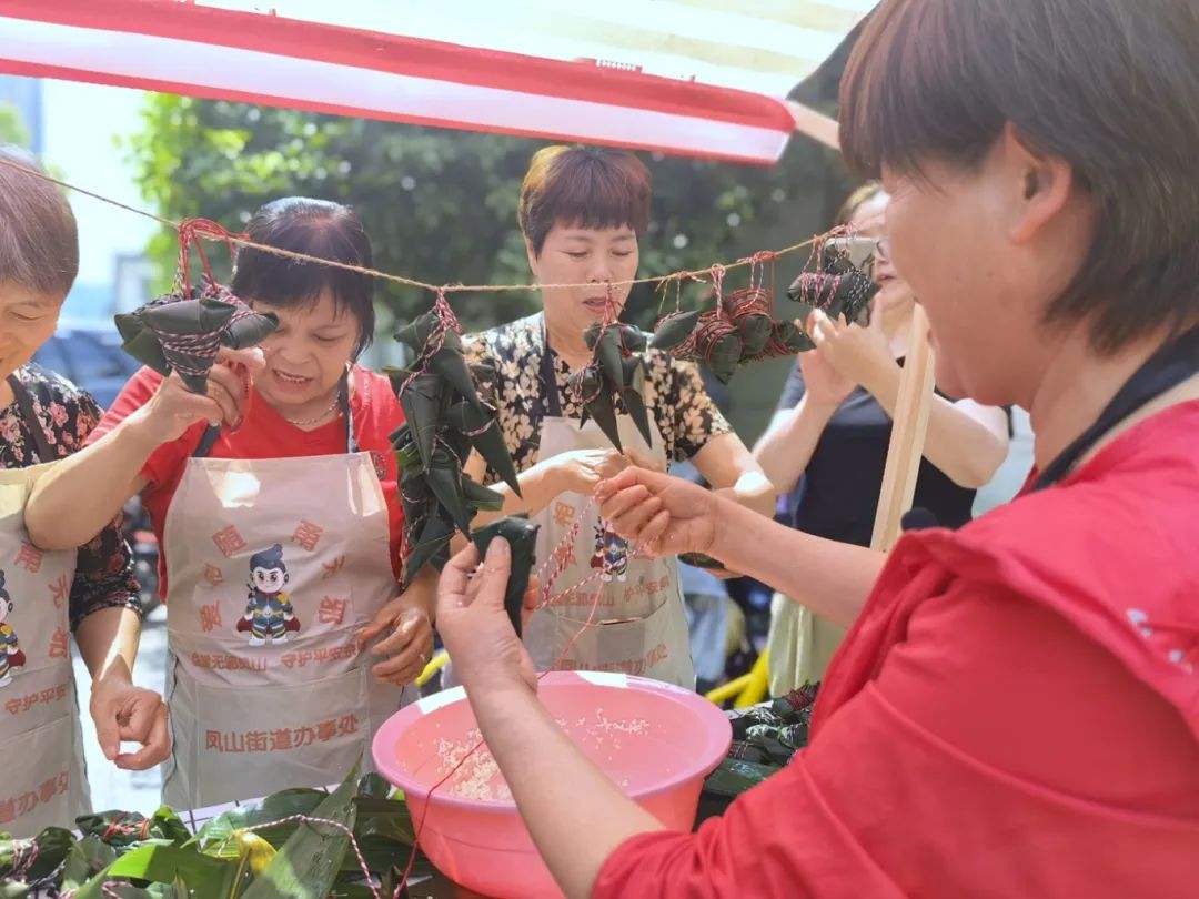 凤山街道东城社区新时代文明实践站开展“造趣端午‘粽’享幸福”包粽子比赛,居民们在活动中感受优秀传统节日的喜庆和温暖。