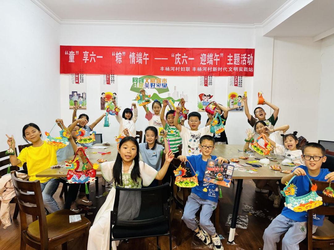 兰江街道丰杨河村新时代文明实践站开展“‘童’享六一‘粽’情端午——‘庆六一迎端午’”主题活动。