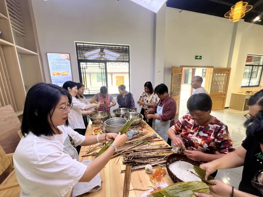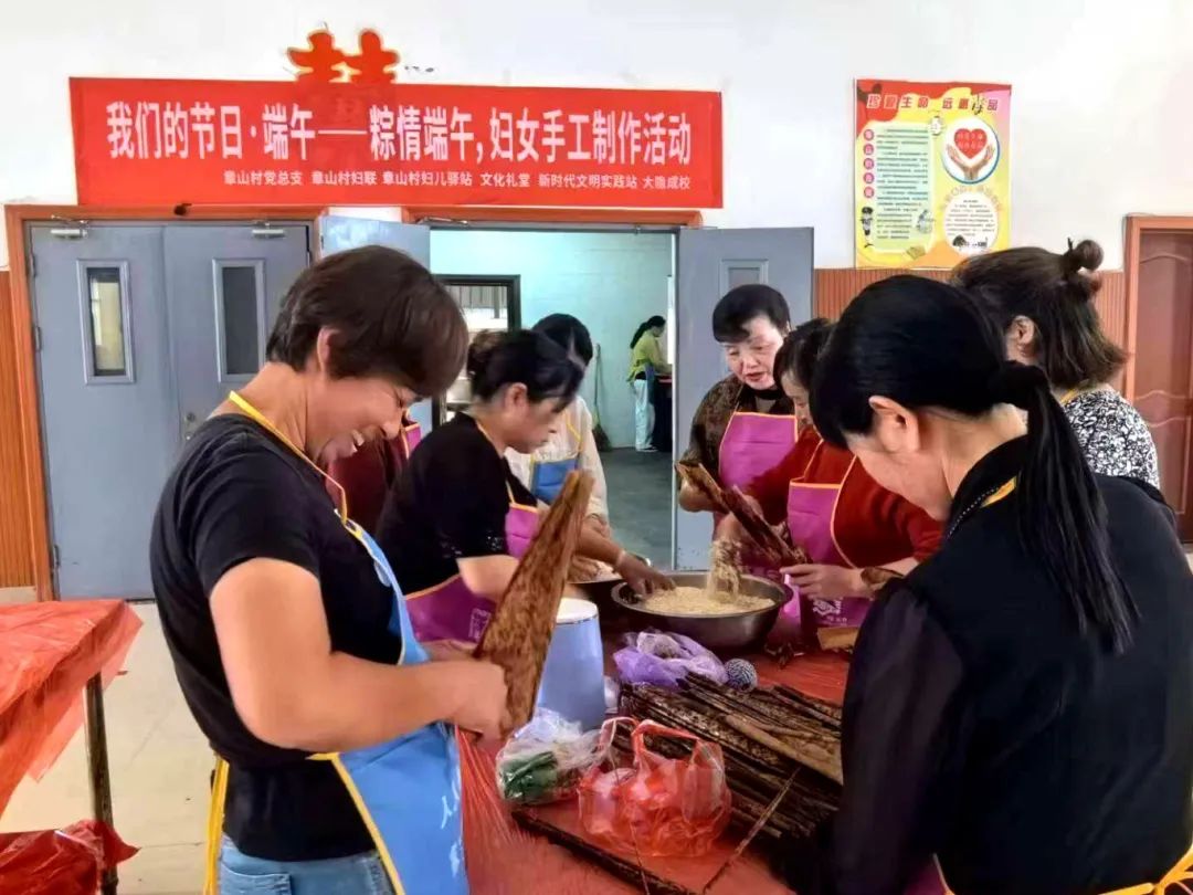 大隐镇章山村新时代文明实践站开展“我们的节日·端午”主题活动,手工制作粽子。