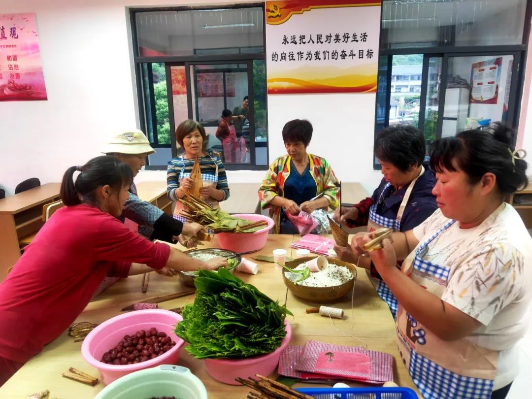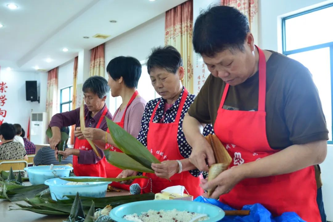 陆埠镇兰山村文化礼堂开展“我们的节日·端午”活动,一起包粽子,为村中90周岁以上老人送去节日温暖。
