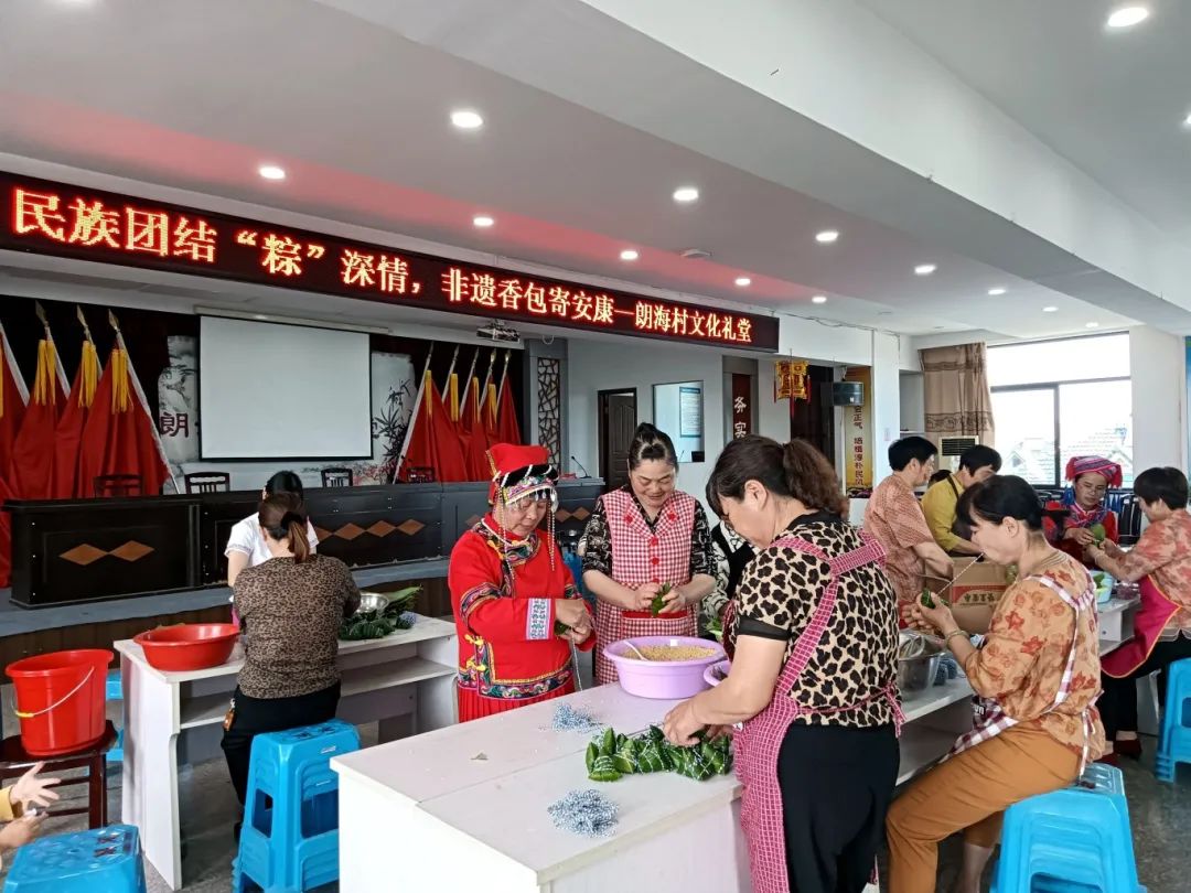 小曹娥朗海村文化礼堂开展“民族团结‘粽’深情,非遗香包寄安康”主题活动。