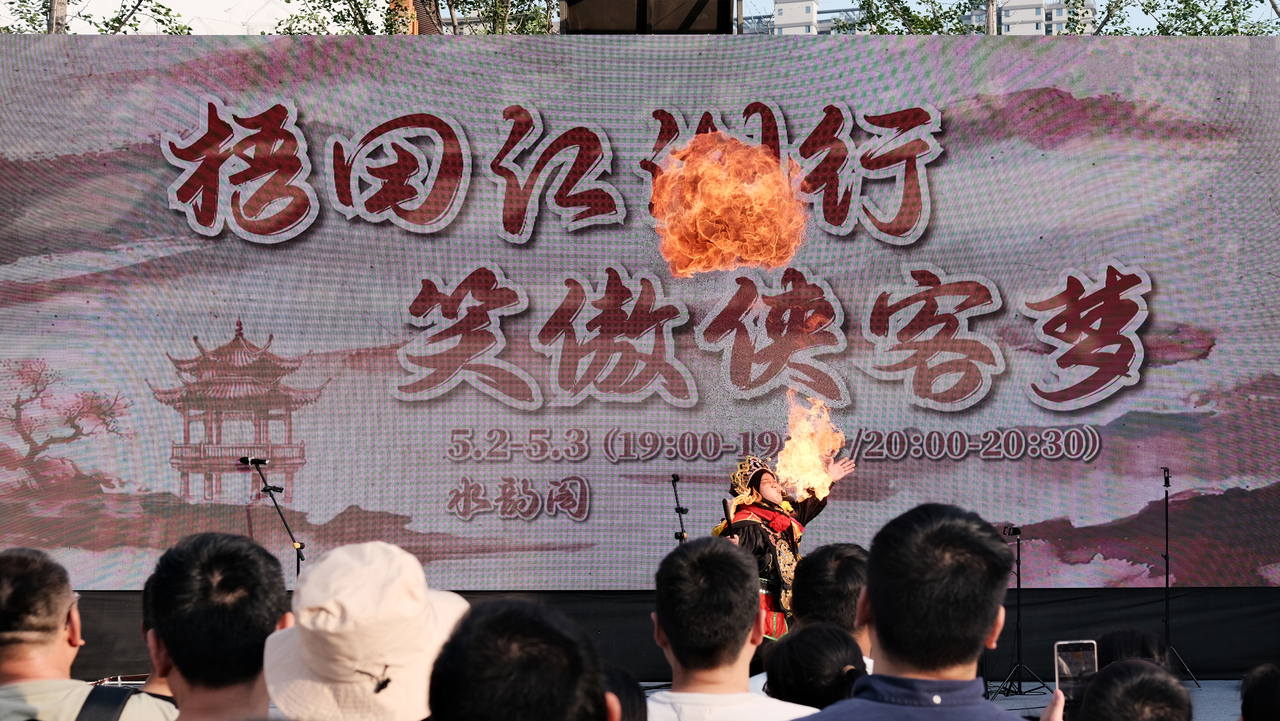 “每个节日我们都会推出不同的主题。这个‘五一’假期,我们结合老街市井文化,构思推出多场演艺活动,希望游客来到这里感受侠气与风雅、市井与诗意。”梧田老街相关负责人说。