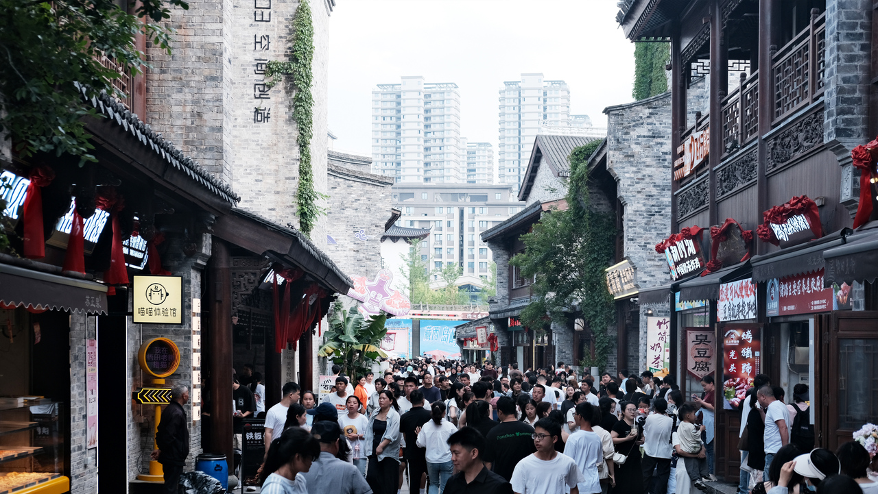 街头演艺成了吸引客流的重要引擎,也为街区文旅消费添了把火。在新开业的“knock-knock”猫狗咖,人流不断;在街角的一家酸菜鱼火锅店,同样人气爆棚,店长付念晗说:“预计‘五一’假期店铺日均营业额将比平时增长将超3倍。”