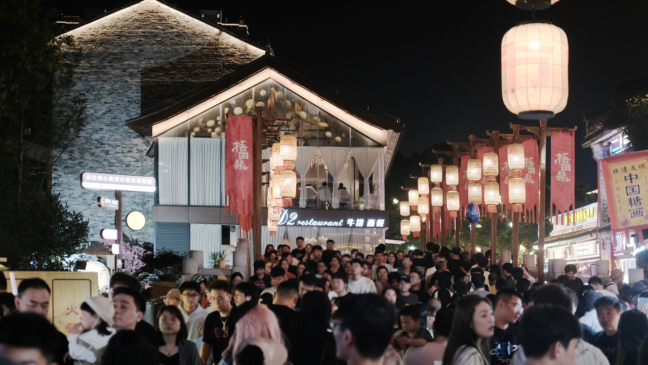 “文艺赋美”展演为街区汇聚起了高人气。据了解,“五一”假期首日,梧田老街便吸引游客12万人次。