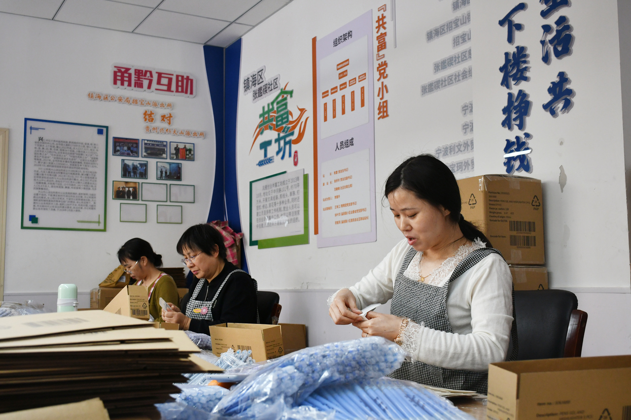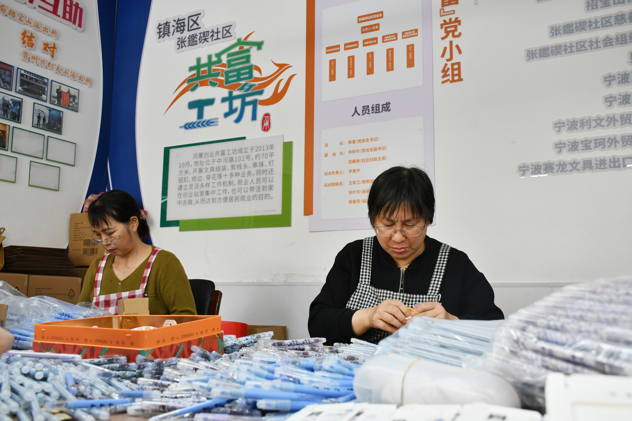 “剪线头、串珠子、钉纽扣,这里专为缺少技术的‘新镇海’全职妈妈提供就业岗位以及技术培训、法律咨询等‘一条龙’服务。”张鑑碶社区相关负责人介绍说,凤雁创业站成立于2004年,是专为辖区赋闲的“新镇海”全职妈妈解决工作问题的零工站。
