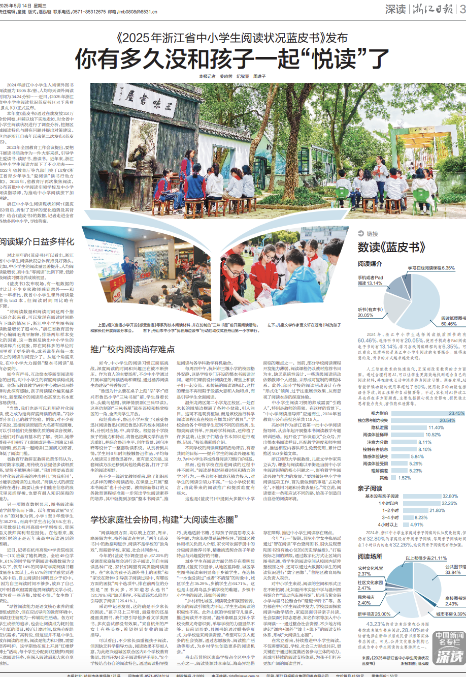 《2025年浙江省中小学生阅读状况蓝皮书》发布