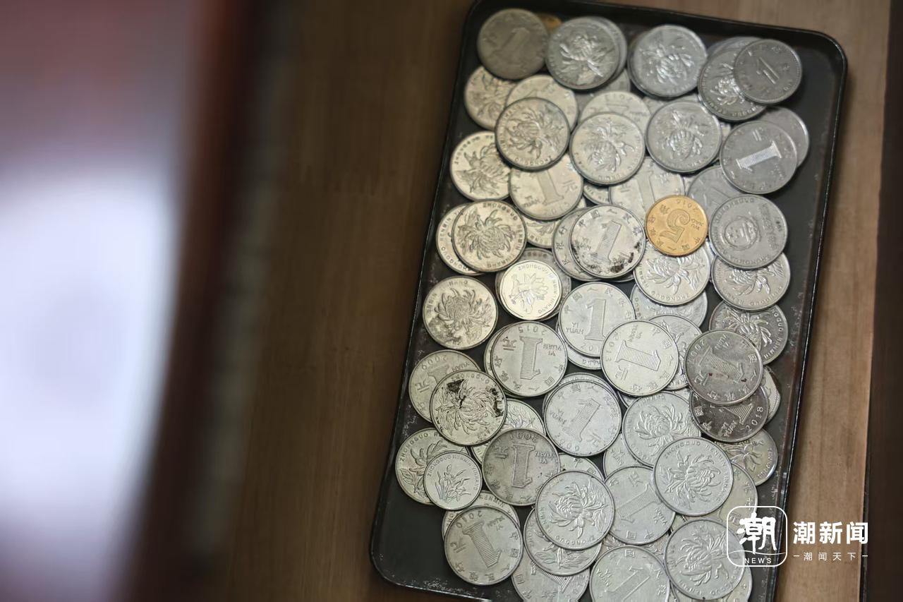 抽屉里的一元硬币。施雄风/摄