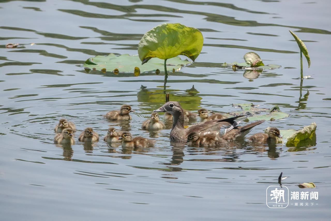 被救助的11只小鸳鸯与鸳鸯妈妈在西湖团聚