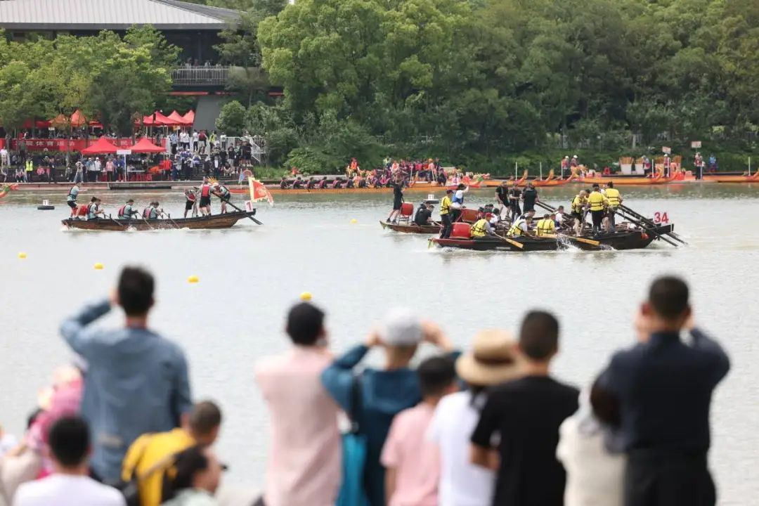 形式上也在不断推陈出新。以龙舟竞渡为例,从5月24日至6月2日,嘉兴联动各县(市、区)举行了多场形式各异的赛龙舟活动。如海宁海洲街道就开展了一场龙舟拔河比赛,两艘龙舟尾部相对,一根绳子连接龙舟尾部,双方朝着反方向划行,先把对手龙舟拉至中心标记线的队伍获胜,这种新颖的形式为传统龙舟竞渡增添了独特的趣味性。