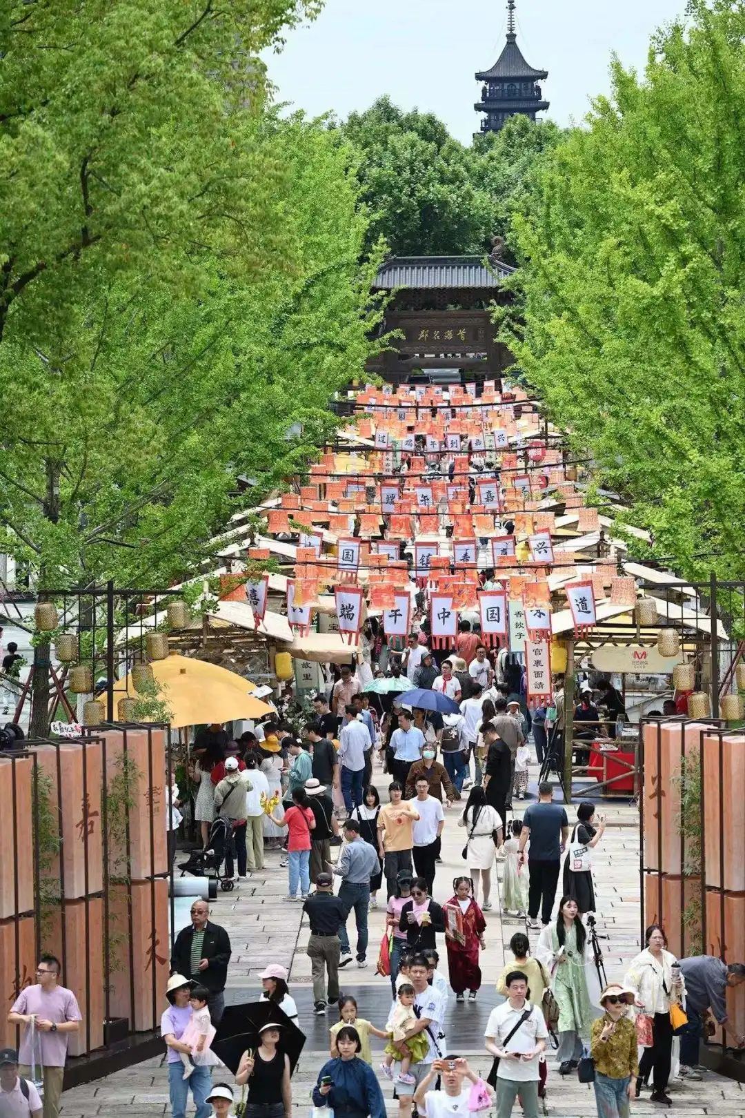 在细节体验方面,嘉兴端午更是做到了极致,充分满足市民和游客的情感需求。今年的端阳大集上,子城遗址公园前的府前街将华丽变身为“顶流”集市,各类摊位琳琅满目,应有尽有。同时,还有精心装扮成屈原、伍子胥、曹娥等端午相关历史人物的NPC穿梭其中,与游客们来一场“偶遇”,极大地增强了活动的趣味性和沉浸感。