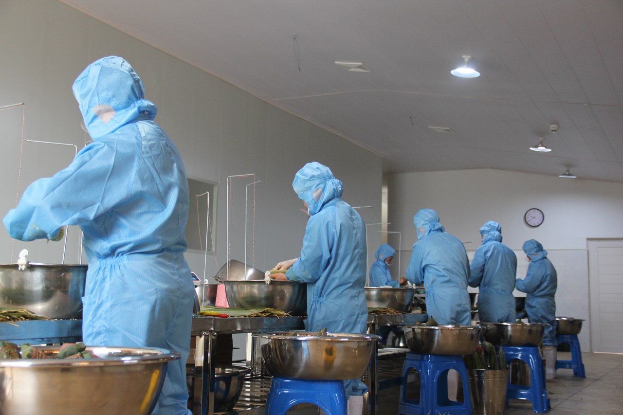 缙云县丰瑞食品有限公司的包粽车间,数十名工人忙着包制药膳粽。拍友 吕侃赛 摄