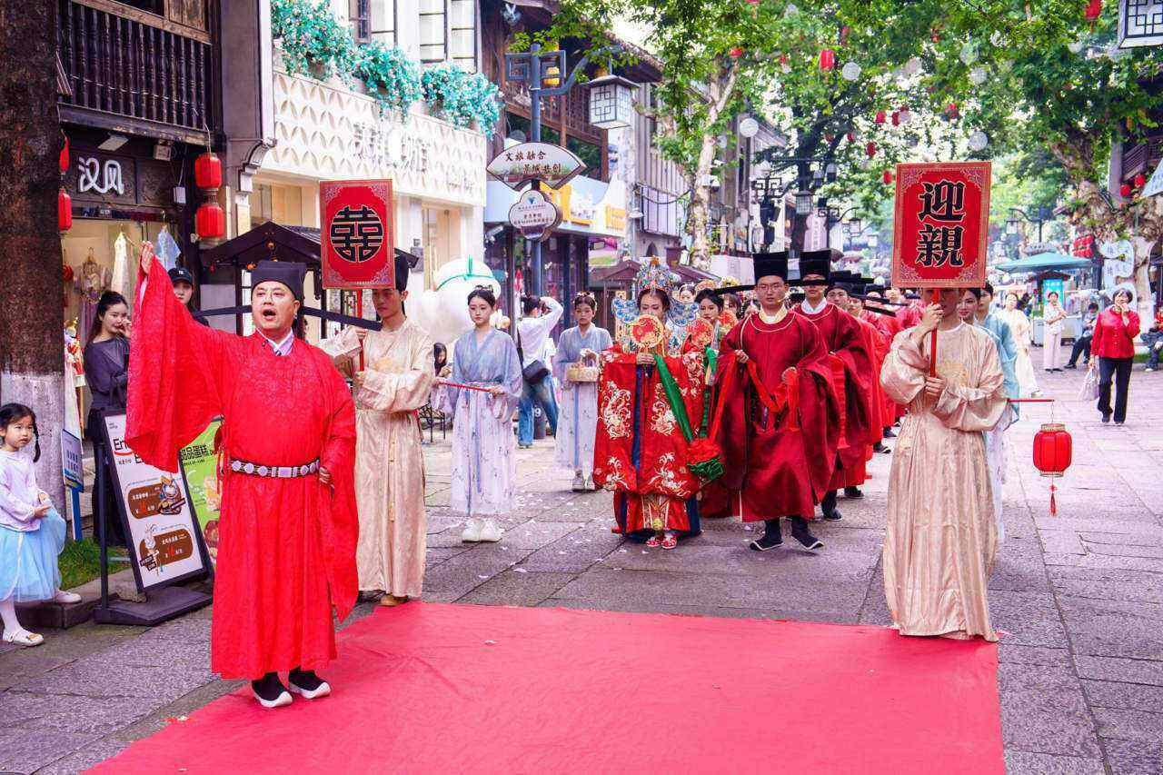 在衢州古城文化旅游区水亭门历史文化街区举行的“南孔囍礼缘定衢州”2025花开三衢集体婚礼。图源:潮新闻客户端。