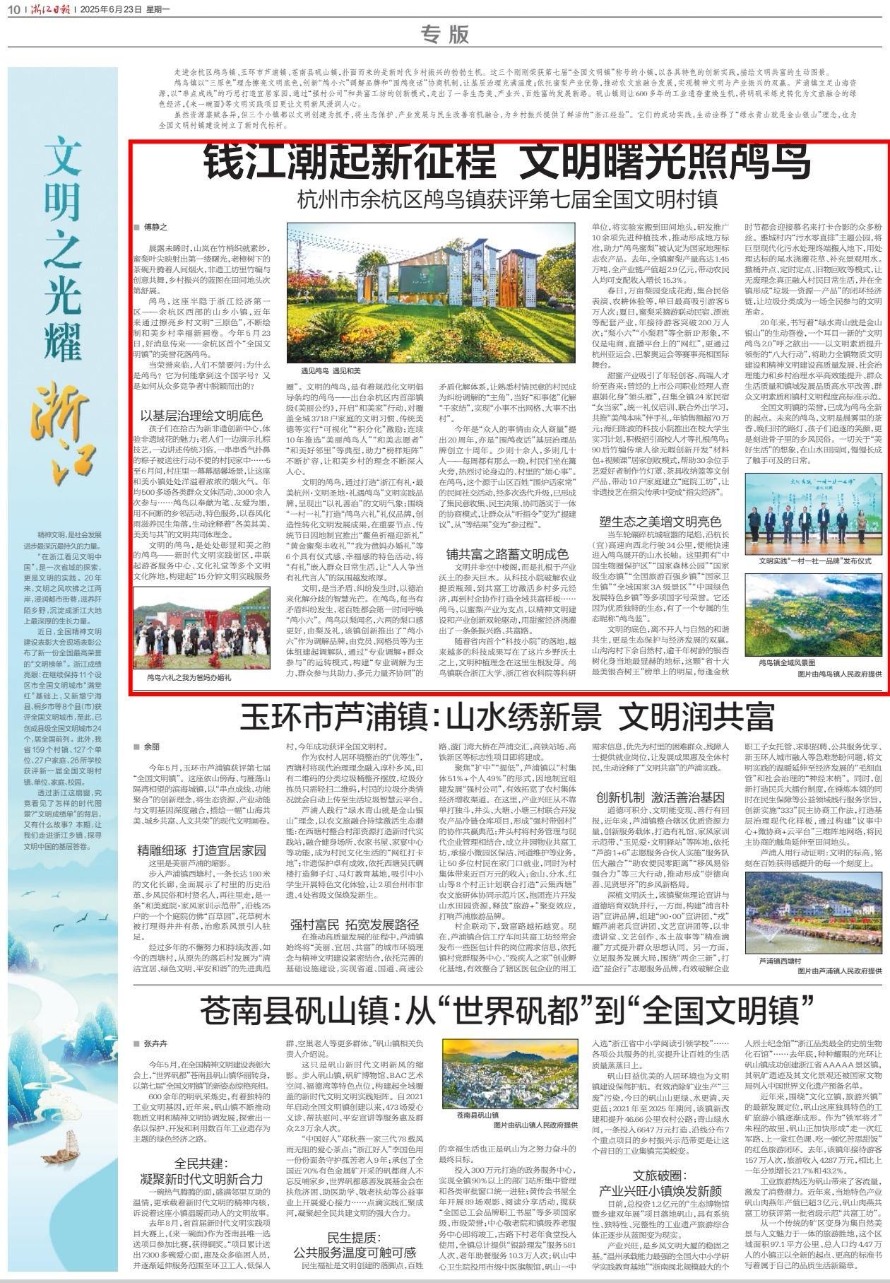 6月23日刊发的浙江日报对此做出报道。